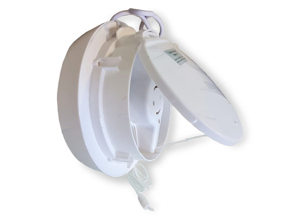 Extractor de aire para muro o ventana, construido en plásticos ABS de alta resistencia. Posee una piola colgante desde la cual se enciende y opera la tapa de descarga de aire posterior. Exteriormente posee una tapa contra la lluvia la cual permanece cerrada, impidiendo la entrada de luz, polvo y/o insectos cuando el equipo no está funcionando.