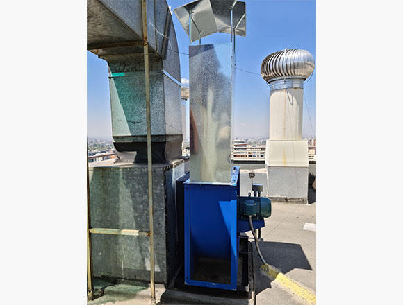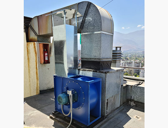 diseñado para trasegar gases de cocina conteniendo humo y partículas de grasa. Eje accionado a transmisión